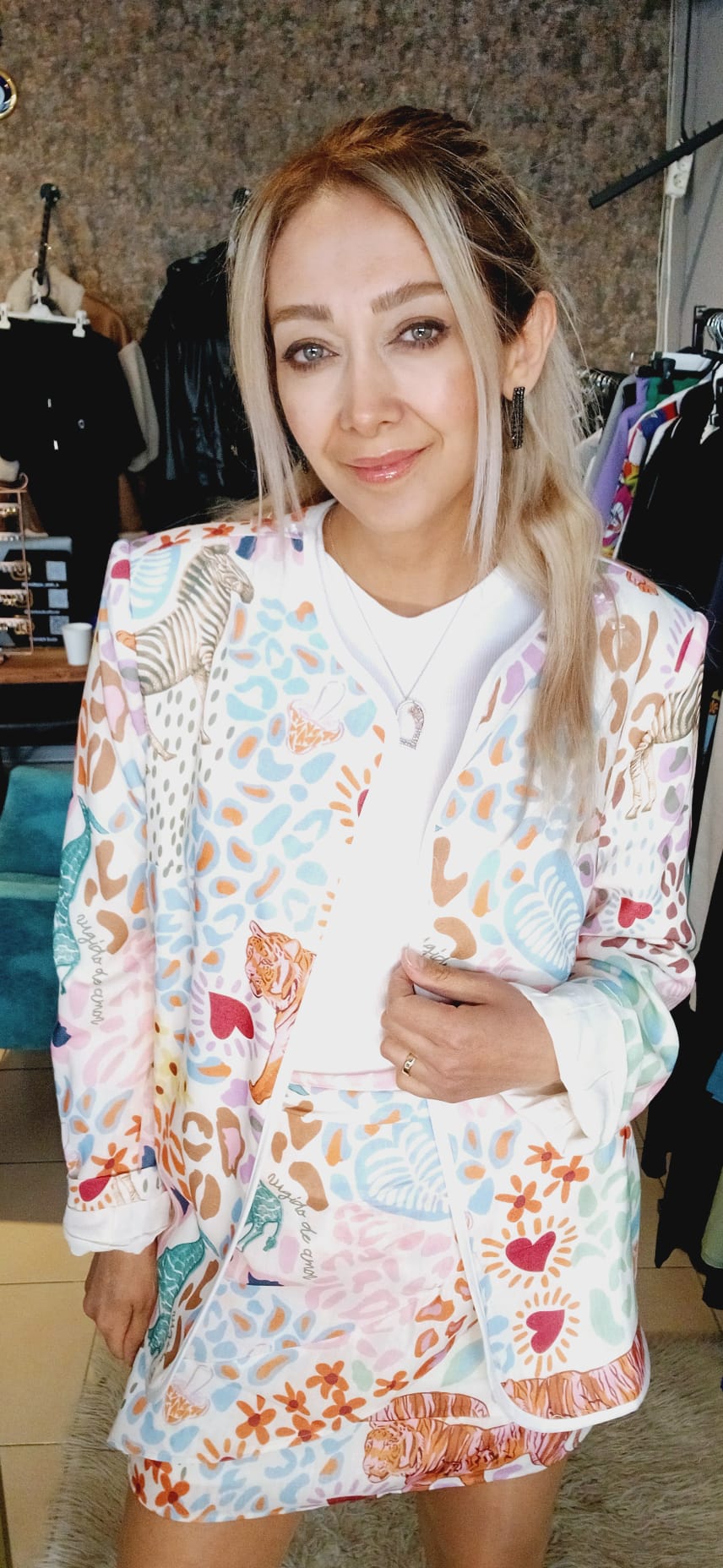 Renkli desenli keten içi astarlı keten ceket